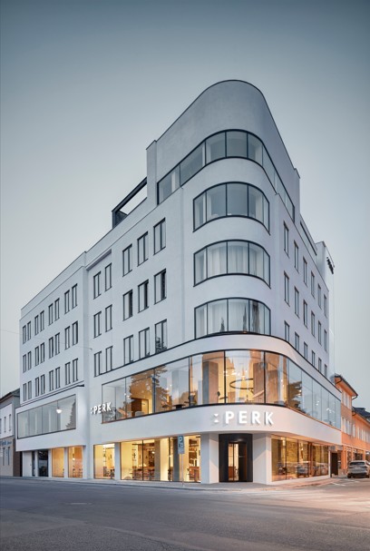 Hotel Perk byl kompletně zrekonstruován z původního objektu Grand, který byl postaven v roce 1931 ve funkcionalistickém stylu. Citlivá obnova s respektem k architektonickému dědictví byla dokončena po téměř dvou letech práce a hotel se znovu otevřel v červnu 2023.
